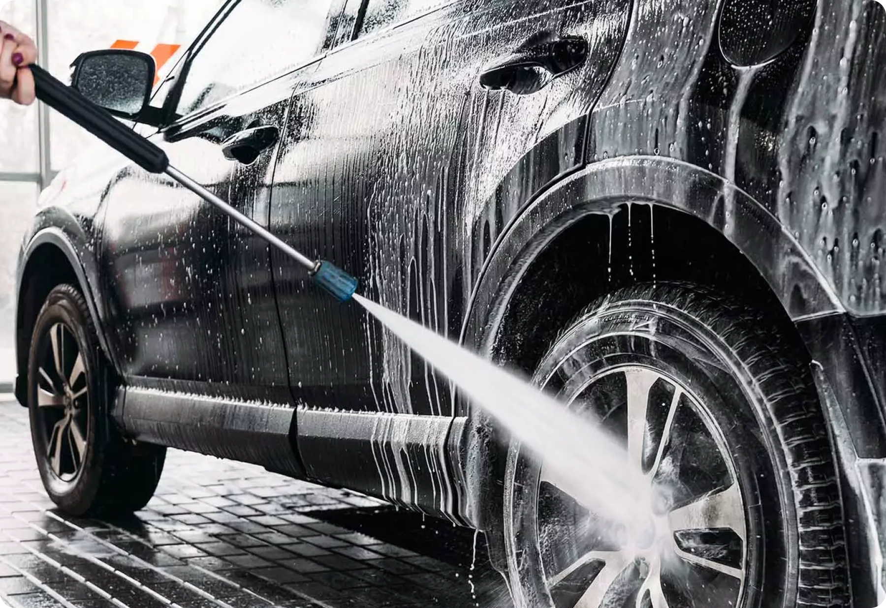 Touchless car washes: Use high-pressure water and detergents, without brushes.
